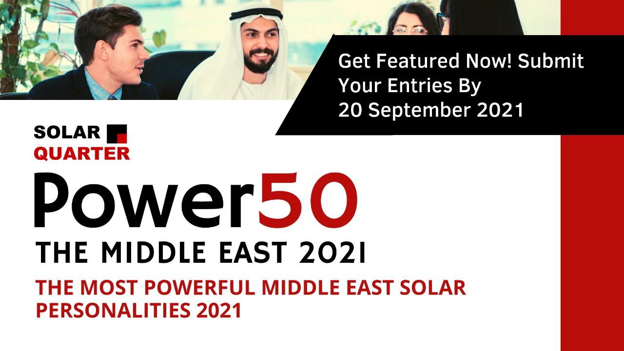 SolarQuarter is happy to announce that we will be releasing an Exclusive Edition of POWER 50 – The Most Powerful Middle East Solar Personalities in 2021. This special release will feature the 50 most powerful Solar Business Leaders in the Middle East PV Market.