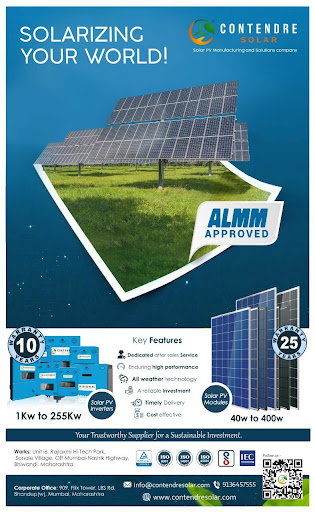Contendre Solar: One of the India’s most Premium Solar PV Manufacturing and Solutions Company is an ISO certified organisation headquartered in Mumbai and with a State-of-the-Art, Automated Solar Module Manufacturing Facility located at Bhiwandi, Maharashtra, India. Our Avant grade European production line provides us with a high level of production accuracy in turn helping us achieve our goal of providing the highest quality Solar Products and Solutions to the World at a competent price point. Contendre strives to produce Indian, high quality solar products ensuring the highest in class power output and best in-class reliability to our customers. Contendreโs product line is tailored for residential, commercial and utility applications. Every Contendre solar module is certi๏ฌed and surpasses industry standard regulations, proving excellent performance over the long-term. With our equipment already advanced & upgraded to keep up with the fast-evolving technology, we are able to provide our customers with a wide range of products along with a special option for customization.ย