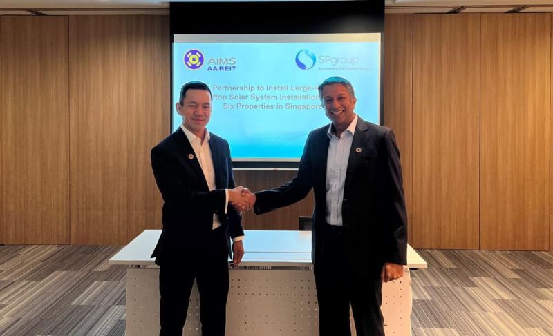 AIMS APAC REIT Management Limited (the Manager) as manager of AIMS APAC REIT (AA REIT) and SP Group (SP), a leading provider of utilities and sustainable energy solutions in the Asia Pacific, announced a partnership to install rooftop solar PV system across six of AA REIT’s industrial, logistics and warehouse properties in Singapore by December 2023. The six properties are 20 Gul Way, 27 Penjuru Lane, 30 Tuas West Road, 103 Defu Lane, 8 & 10 Pandan Crescent and 8 Tuas Avenue 20. The 10.8 Megawatt-peak (MWp) combined solar PV system will be one of the largest rooftop solar installations by any Singapore-listed real estate investment trust.